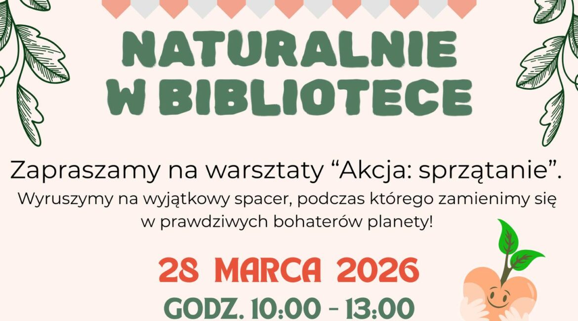 Już w najbliższą sobotę zapraszamy na trzecie warsztaty z programu „Naturalnie w Bibliotece”, podczas których zamienimy się w prawdziwych bohaterów planety. Czeka na Was spacer pełen przygód i odkrywanie tajemnic segregacji śmieci. Dowiecie się, gdzie trafiają odpady, jak je rozpoznawać i dlaczego warto dbać o naszą Ziemię. Będzie ruch, zabawa i ważna misja do wykonania – razem możemy naprawdę dużo! Zapraszamy 28 marca 2026, w godz. 10:00 – 13:00.